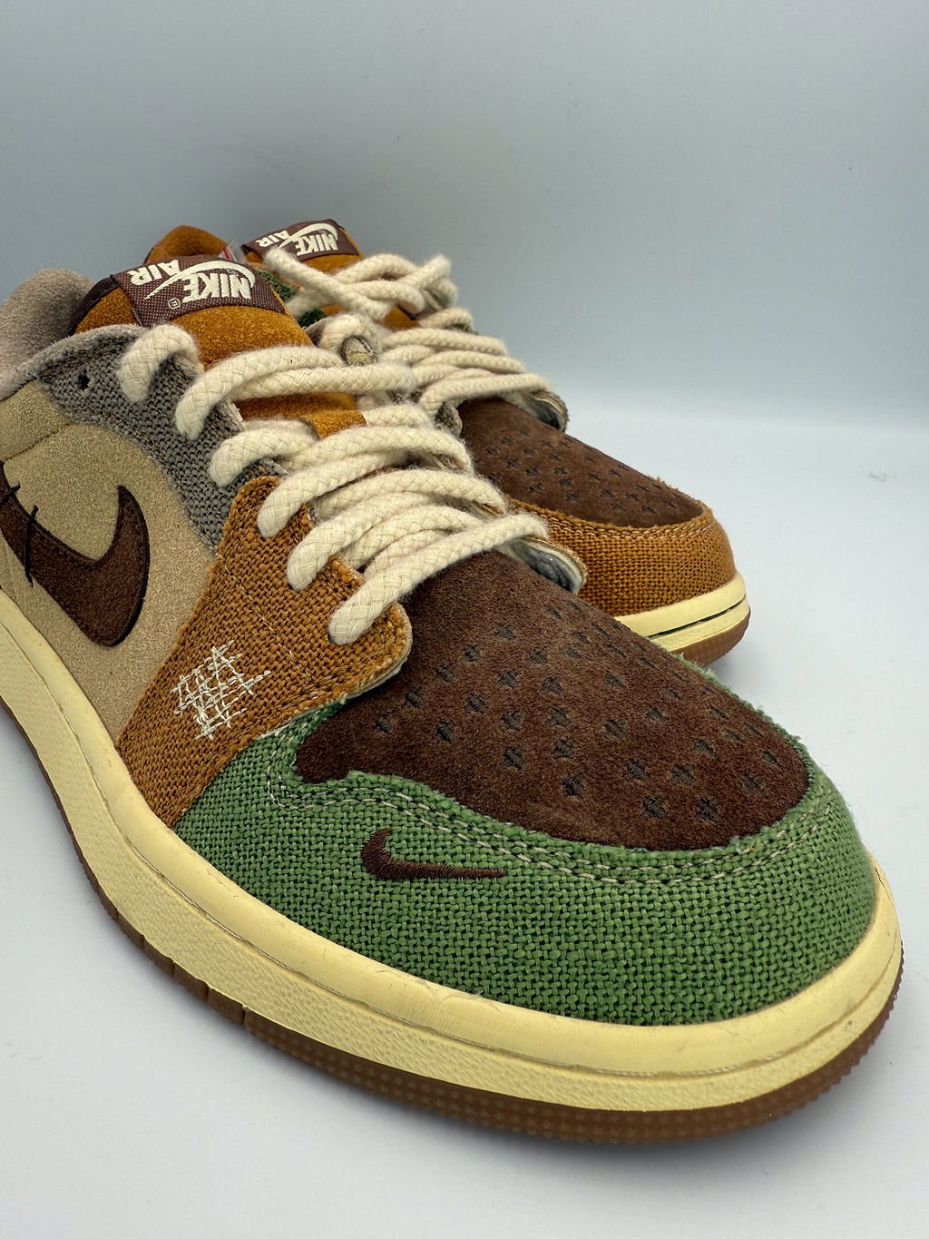 The Air Jordan 1 Retro Low OG “Zion Williamson Voodoo” is a bold, artistic take on the classic Jordan 1 Low silhouette, inspired by New Orleans’ rich voodoo heritage. This sneaker features earthy tones, mismatched burlap-like overlays, and intricate stitching, creating a rugged yet stylish aesthetic. The inverted mini-Swoosh and voodoo doll embroidery on the heel adds unique storytelling elements, making this pair a standout in any collection.